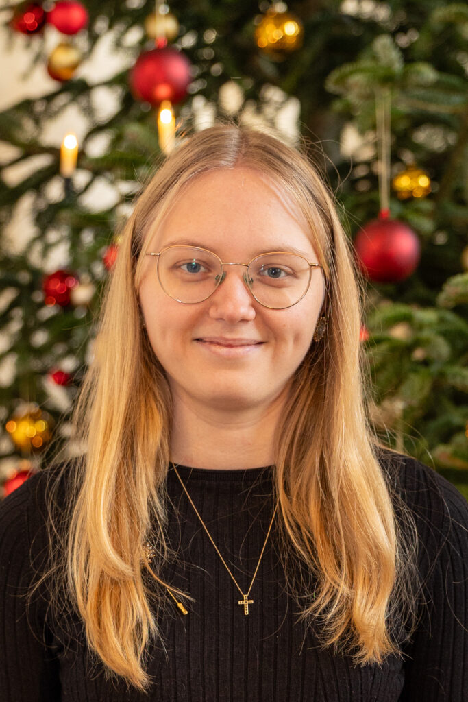 Tabea Krüger: geboren in Sondershausen und aufgewachsen im nahegelegenen Greußen. Bereits im frühen Alter bestritt sie mit der Violine Wettbewerbe und Konzerte. 2024 Abschluss zur C-Kirchenmusikerin an der Hochschule für Kirchenmusik Dresden. Mitgliedschaft in diversen Chören, wie z.B. dem sächsischen Vokalensemble. Seit 2024 studiert sie an der HfKM Regensburg im Fach Gesangspädagogik ( Dorothée Rabsch). Sie unterstützt nun ab 2025 die Adventsdamen mit ihrem genialen Vom-Blatt-Singen in den tiefen/mittleren Stimmen.